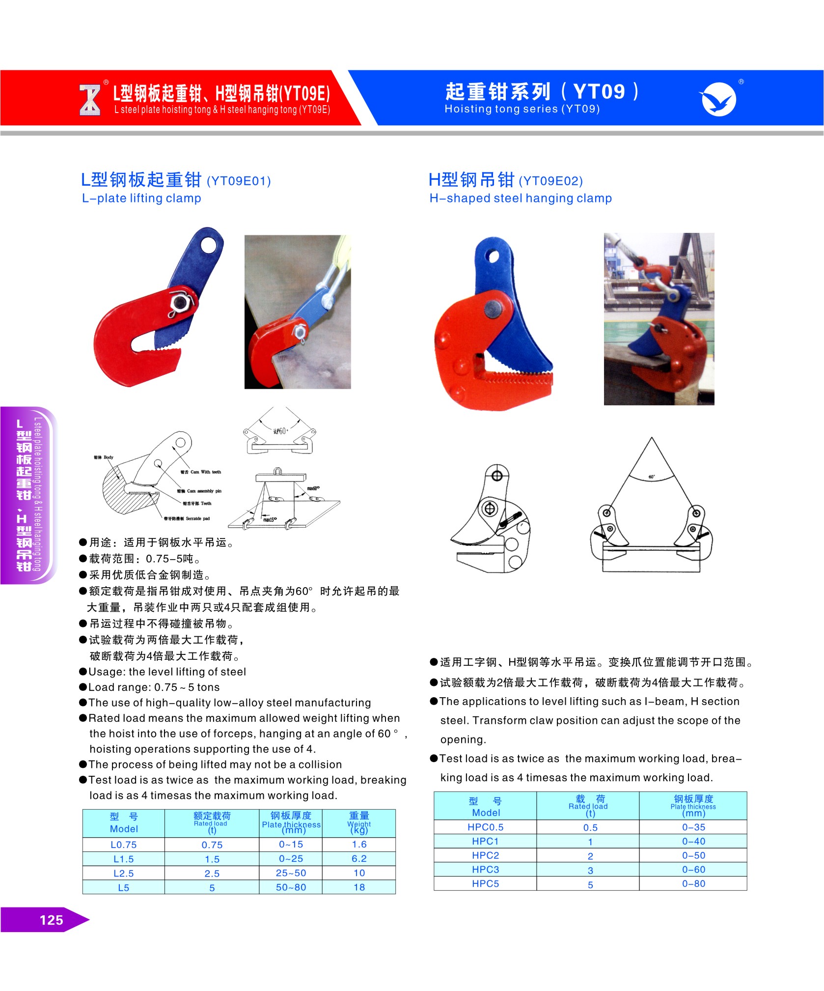 L型鋼板起重鉗、H型鋼吊鉗(YT09E)